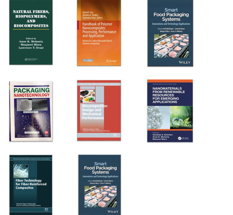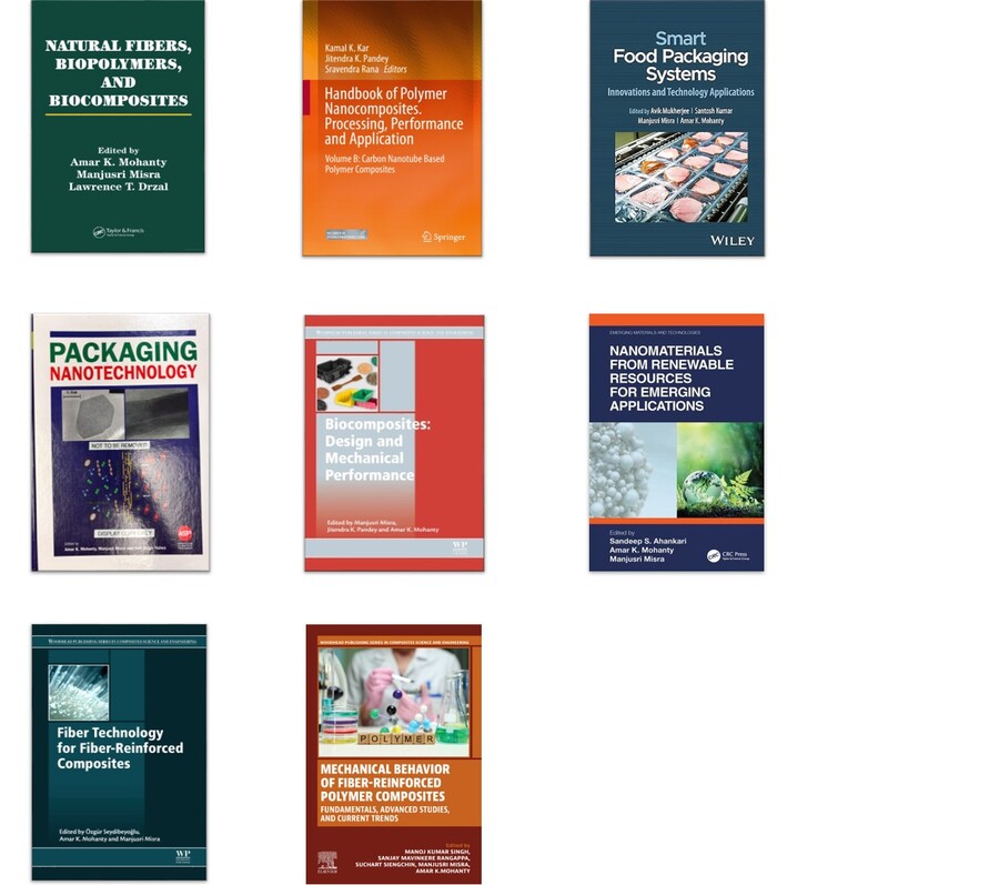 | "Nanomaterials from Renewable Resources for Emerging Applications". Ahankari, S. S., Misra, M., & Mohanty, A. K. (2023). Published, CRC Press, Taylor and Francis Group, Boca Raton, FL. |