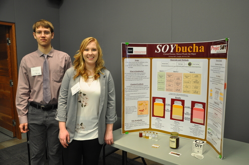 Undergraduate students Christoff Reimer and Maisyn Picard, with their project on SOYbucha.